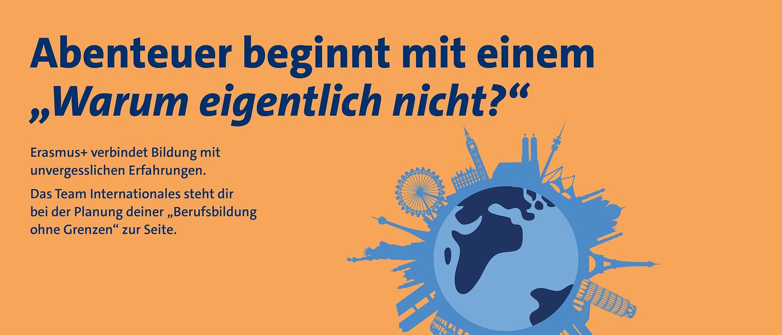 • Suche nach Fördermitteln und bei deren Beantragung (z.B. Stipendien über Erasmus+ und AusbildungWeltweit)