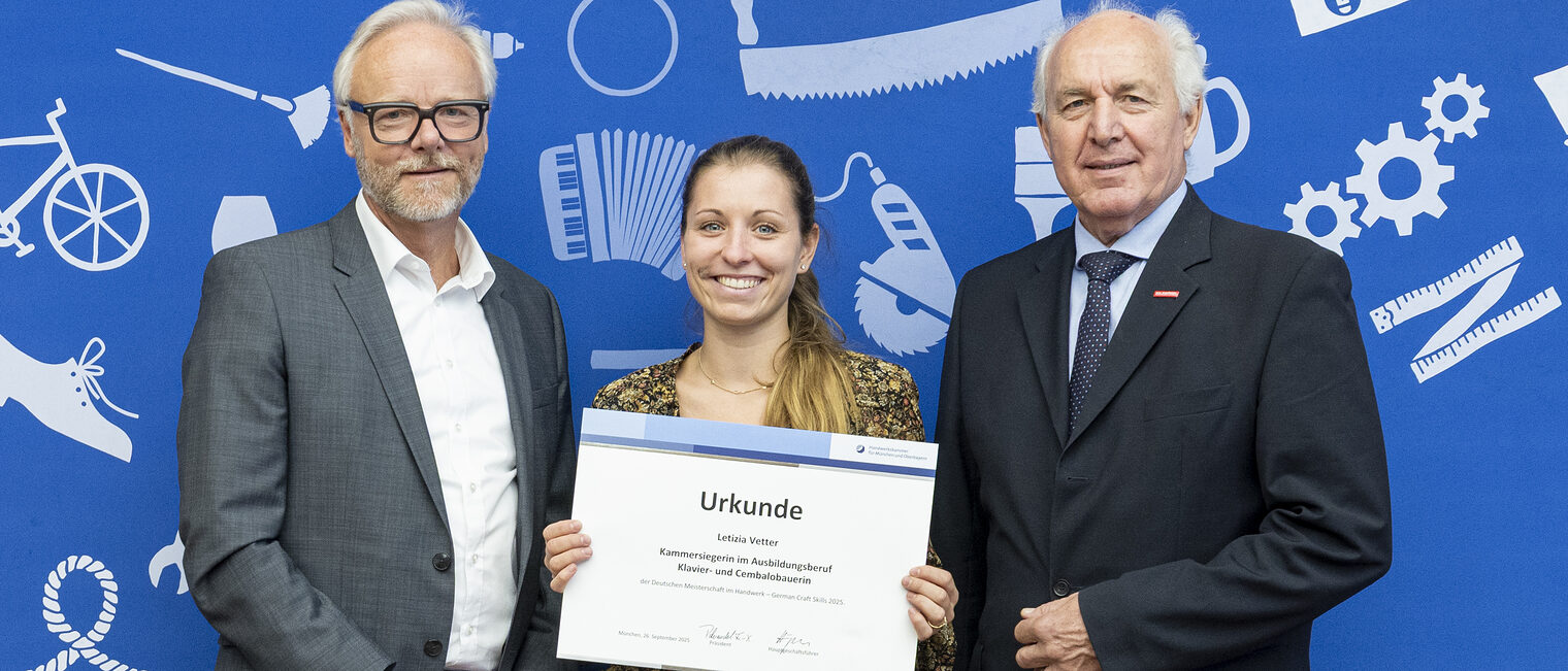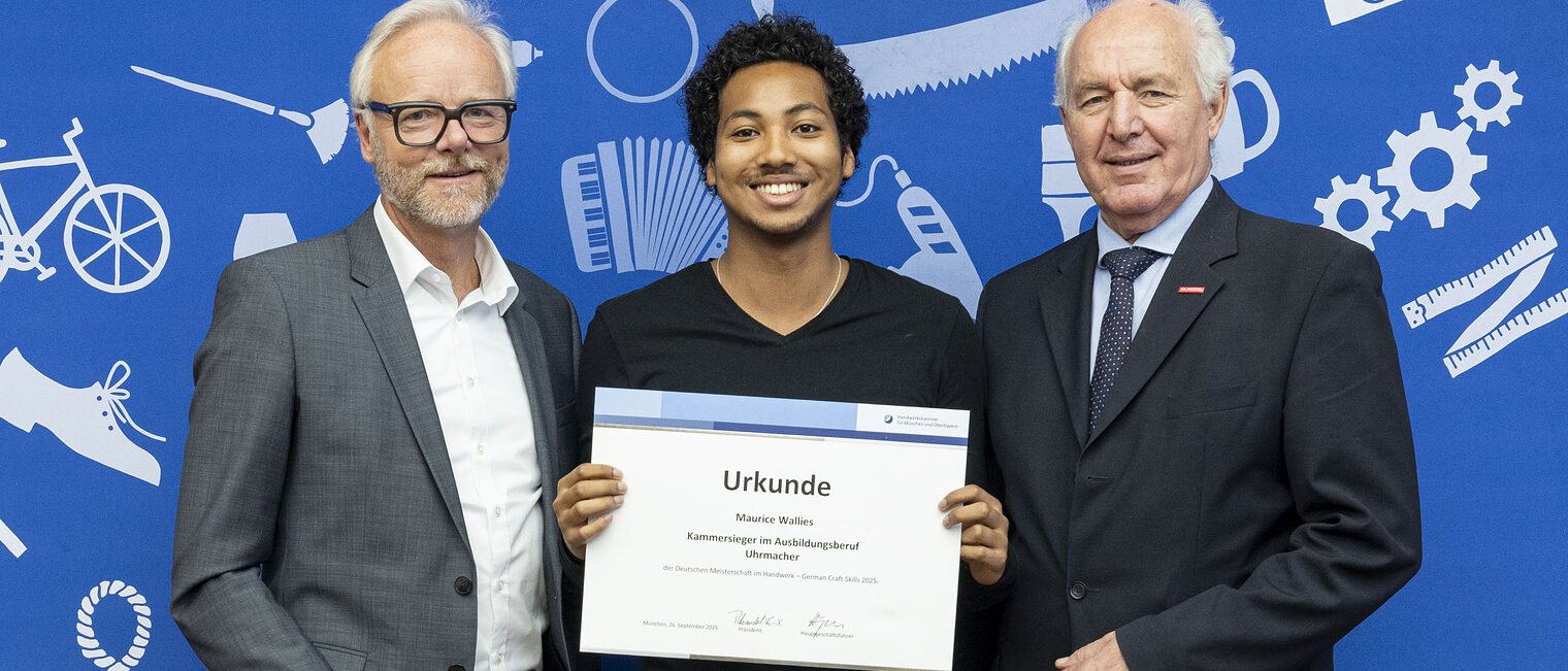 Kammerpräsident Franz Xaver Peteranderl gratulierte: „Sie haben Ihre Ausbildung im Handwerk mit Bravour absolviert, hervorragende Ergebnisse in der Prüfung erzielt und sich im Wettbewerb gegen die starke Konkurrenz aus unserem Kammerbezirk durchgesetzt.“ Er betonte zugleich die Bedeutung der Ausbilderinnen und Ausbilder: „Sie sind die Herzkammer des dualen Systems im Handwerk.“ Zwölf von ihnen wurden stellvertretend mit einer Urkunde des Bayerischen Wirtschaftsministeriums geehrt.